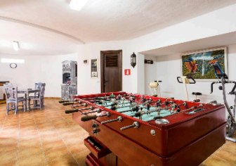 La parcela de 3.500 m² cuenta con piscina, zona de barbacoa, cancha de tenis y fútbol, gimnasio, parque infantil y sala de juegos. Comodidades modernas: aire acondicionado, WiFi, TV y sistema de sonido exterior.